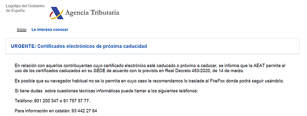 Certificados electrónicos de próxima caducidad.