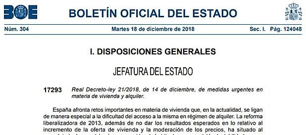 El Pleno del Congreso de los Diputados debatió el 22 de enero, en sesión extraordinaria, entre otros el Real Decreto-ley 21/2018, de 14 de diciembre de medidas urgentes en materia de vivienda y alquiler, publicado en el BOE de 18 de diciembre de 2018. Dicho Real Decreto-ley no han contado con el respaldo de la […]