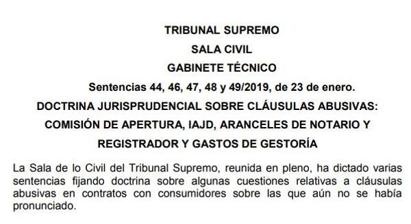 El TS establece doctrina sobre distribución de gastos hipotecarios