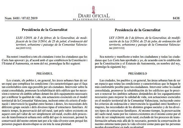 Comentario a la Ley 1/2019, de modificación de la Ley 5/2014, de Ordenación del Territorio, Urbanismo y Paisaje de la Comunitat Valenciana