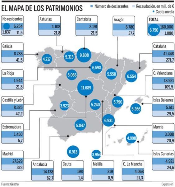 El IP es de aplicación en todo el territorio nacional, aunque está cedido a las Comunidades Autónomas, por lo que éstas podrán regular el mínimo exento, el tipo impositivo, las deducciones y las bonificaciones, siempre que sean compatibles con la norma estatal.