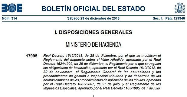 - En la Disposición Final Cuarta del Real Decreto 1512/2018 se dispone que: